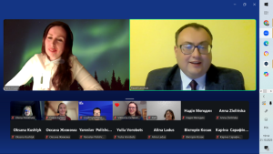 Dr Yana Hladyr podczas wystąpienia. Fot. archiwum prywatne.Dr Yana Hladyr i dr Paweł Levchuk podczas dyskusji. Fot. archiwum prywatne.Prof. Anna Zielińska i dr Yana Hladyr podczas dyskusji. Fot. archiwum prywatne.