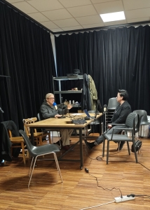 Autorki podcastu – Joanna Roszak i Ewa Wróblewska-Trochimiuk. Fot. archiwum prywatne.Joanna Roszak podczas rozmowy z Wojciechem Kościelniakiem. Fot. archiwum prywatne.Ewa Wróblewska-Trochimiuk z Wojciechem Kościelniakiem podczas nagrania w Teatrze Kameralnym w Bydgoszczy. Fot. archiwum prywatne.