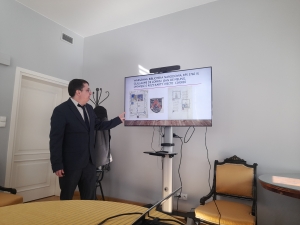 Wykład rozpoczął od przedstawienia i charakterystyki korpusu 60 francuskojęzycznych rękopisów przechowywanych w Polsce, znajdujących się w księgozbiorach dziesięciu instytutów badawczych. Korpus ten jest bardzo zróżnicowany m. in. co do gatunku, długości, czasu powstania, miejsca przechowywania oraz ornamentacji.