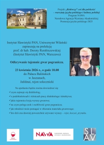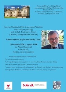Instytut Slawistyki PAN oraz Uniwersytet Wileński zapraszają na cykl prelekcji, które odbędą się 23 kwietnia 2026 r. w Pałacu Balińskich w Jaszunach (rejon solecznicki).